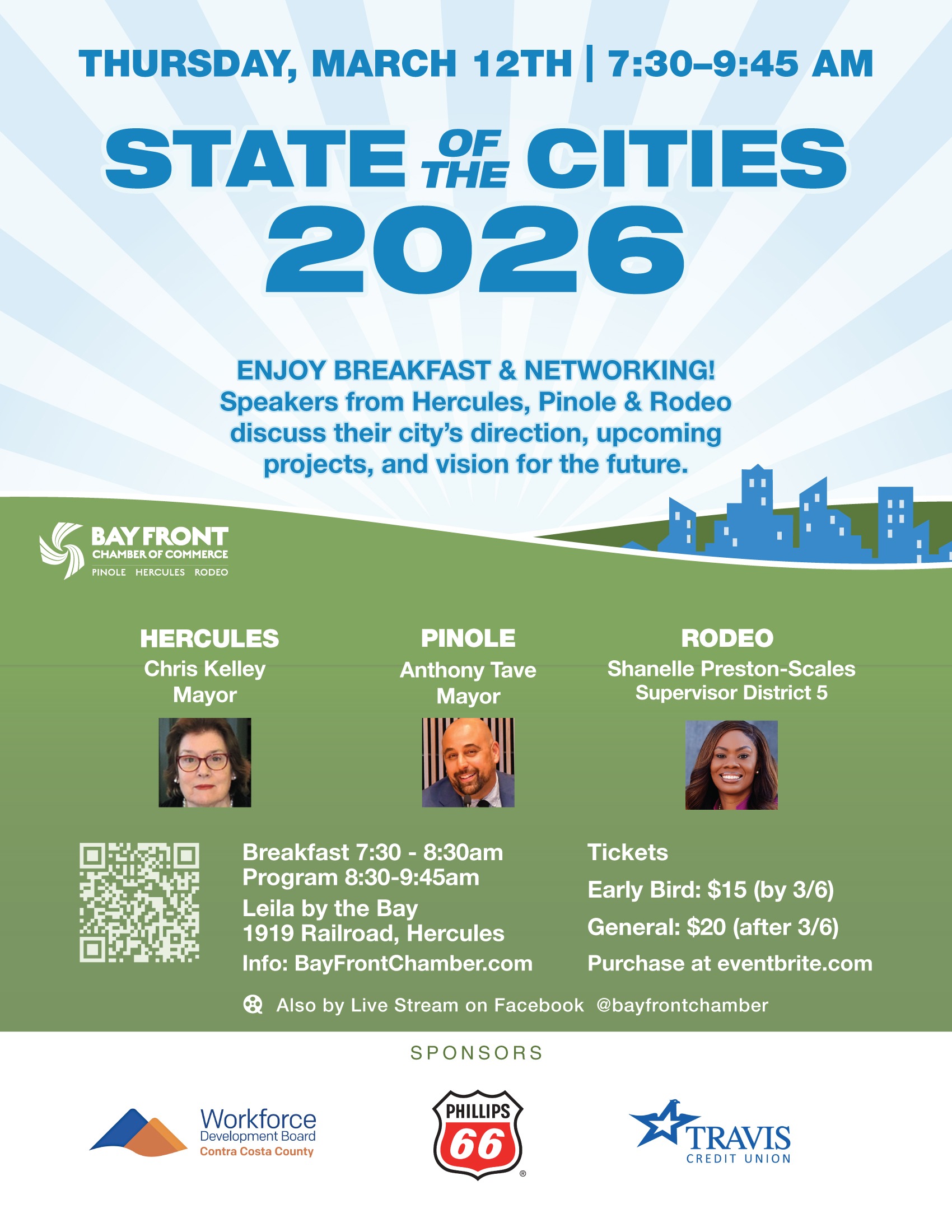 8:30am – 9:45am Speakers: HERCULES – Mayor Chris Kelley, PINOLE – Mayor Anthony Tave, RODEO – District 5 Supervisor Shanelle Preston-Scales
