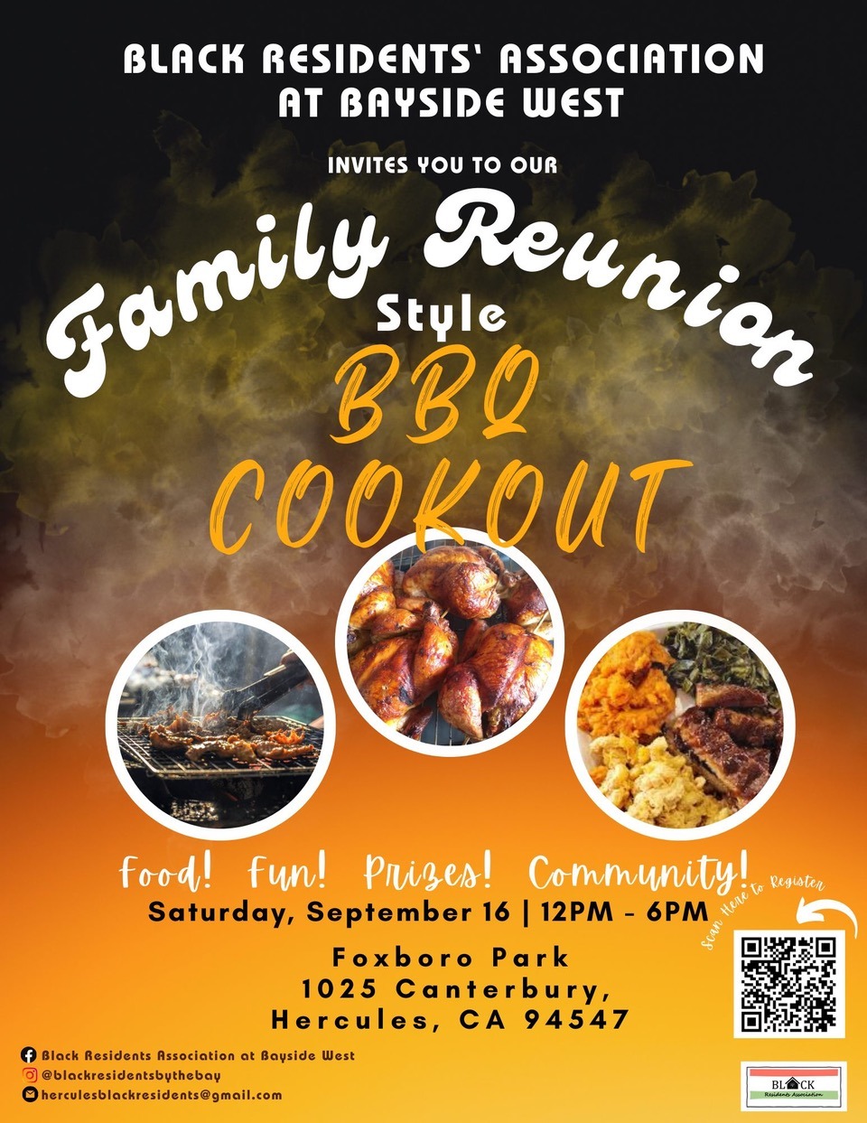 Join us for a sizzling and mouthwatering BBQ Cookout hosted by the Black Residents’ Association! This family reunion style cookout is happening on Sun Sep 03, 2023 at 12:30 PM in the vibrant city of Hercules, CA.
