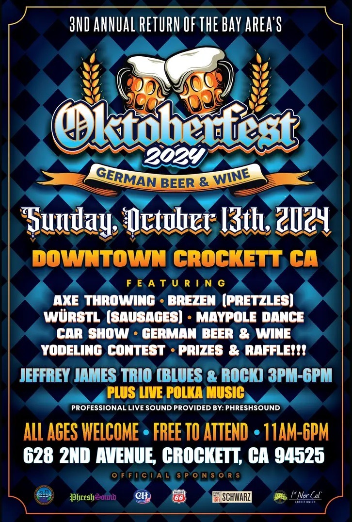 october, 2024 CROCKETT OKTOBERFEST 202413oct11:00 am6:00 pmCROCKETT OKTOBERFESTMUSIC, FOOD, VENDORS11:00 am - 6:00 pm Event DetailsFOOD, MUSIC, VENDORS Axe throwing Car show Yodeling contest German Beer & Wine Event Details FOOD, MUSIC, VENDORS Axe throwing Car show Yodeling contest German Beer & Wine Time(Sunday) 11:00 am - 6:00 pm CalendarGoogleCal Leave A Comment Cancel replyComment Please enter an answer in digits:2 × 4 =