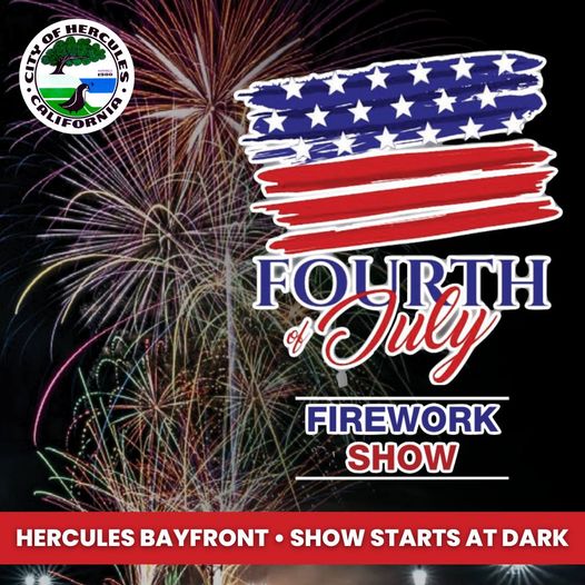 🎆 Join the #CityofHercules for our community Fourth of July fireworks celebration at the Hercules Bayfront! Enjoy food trucks and a fantastic show! The show will begin once night falls (approximately 9:30 p.m.).