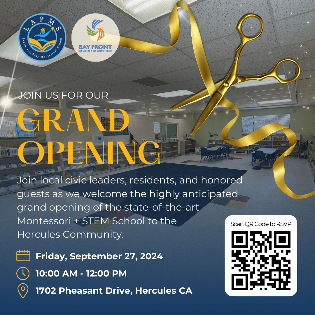 Join us as we welcome the highly anticipated grand opening & ribbon cutting of the state-of-the-art Montessori STEM School to the Hercules Community.
