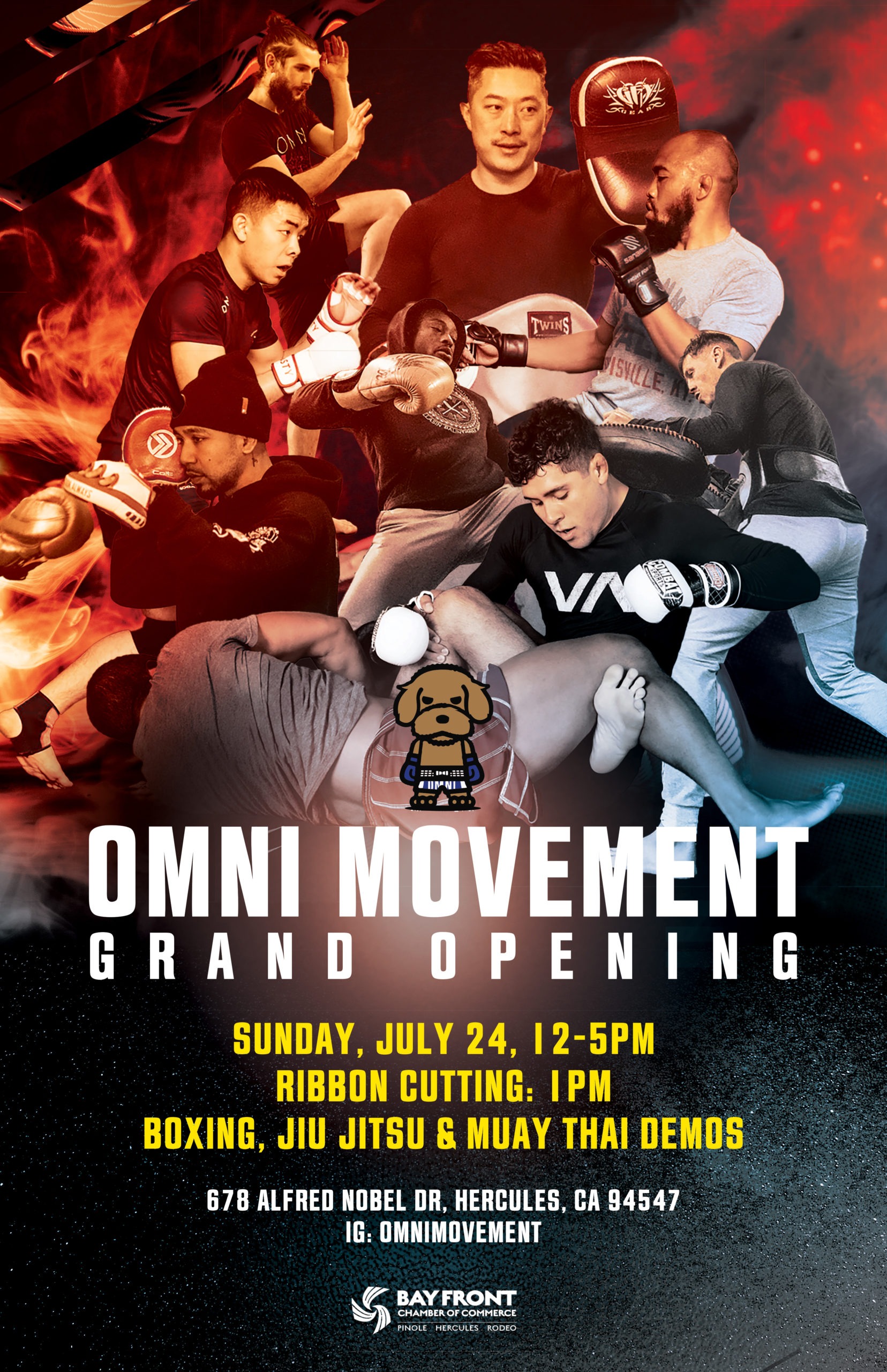 july, 2022 OMNI MOVEMENT GRAND OPENING OMNI MOVEMENT 628 Alfred Nobel Dr., Hercules, CA 94547 202224jul12:00 pm5:00 pmOMNI MOVEMENT GRAND OPENINGRIBBON CUTTING @ 1:00 PM12:00 pm - 5:00 pm OMNI MOVEMENT, 628 Alfred Nobel Dr., Hercules, CA 94547 Event DetailsJoin Us! Boxing, Jiu Jitsu, and Muay Thai demos. Event Details Join Us! Boxing, Jiu Jitsu, and Muay Thai demos. Time (Sunday) 12:00 pm - 5:00 pm LocationOMNI MOVEMENT628 Alfred Nobel Dr., Hercules, CA 94547 CalendarGoogleCal