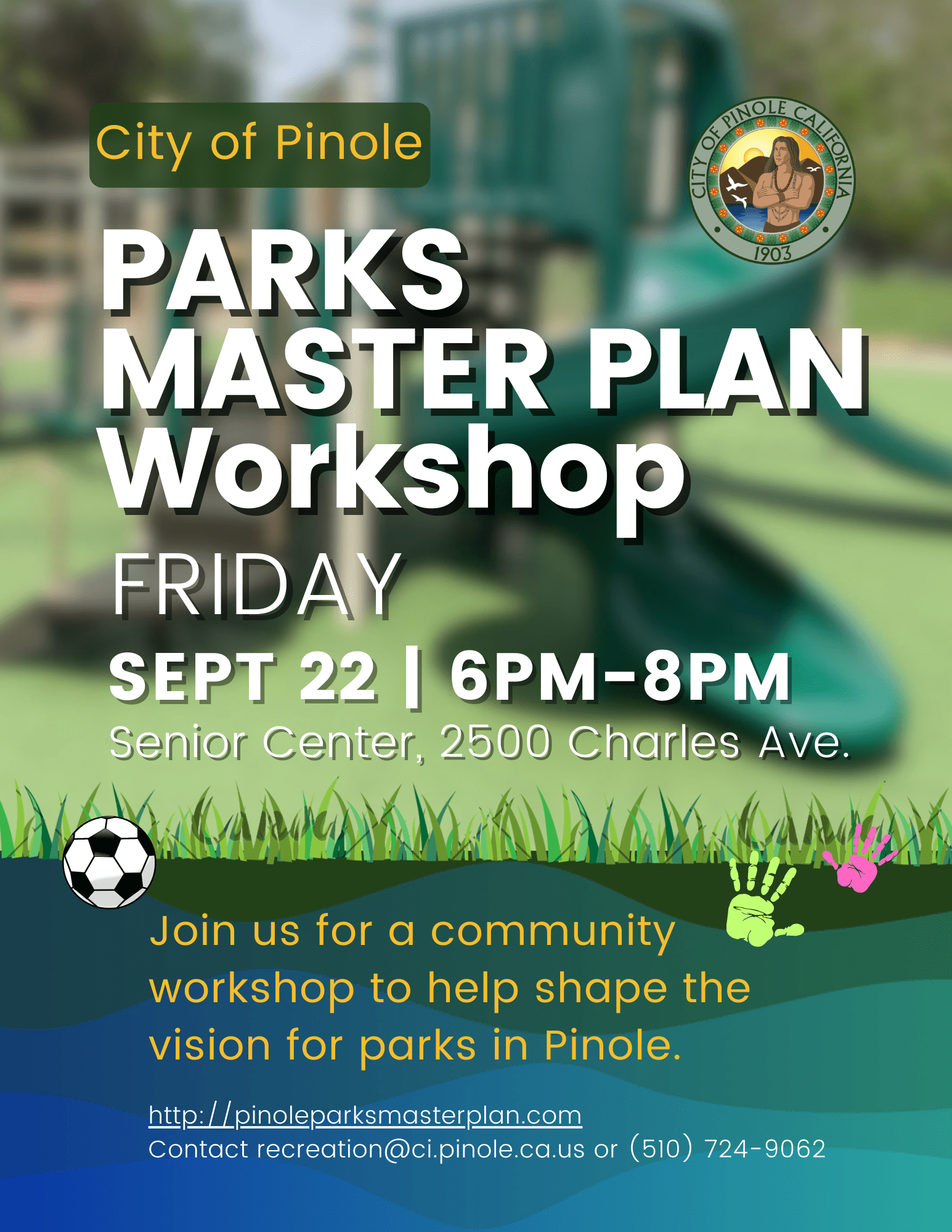 Join us at this community workshop and share your opinions to help shape the vision for parks in Pinole.