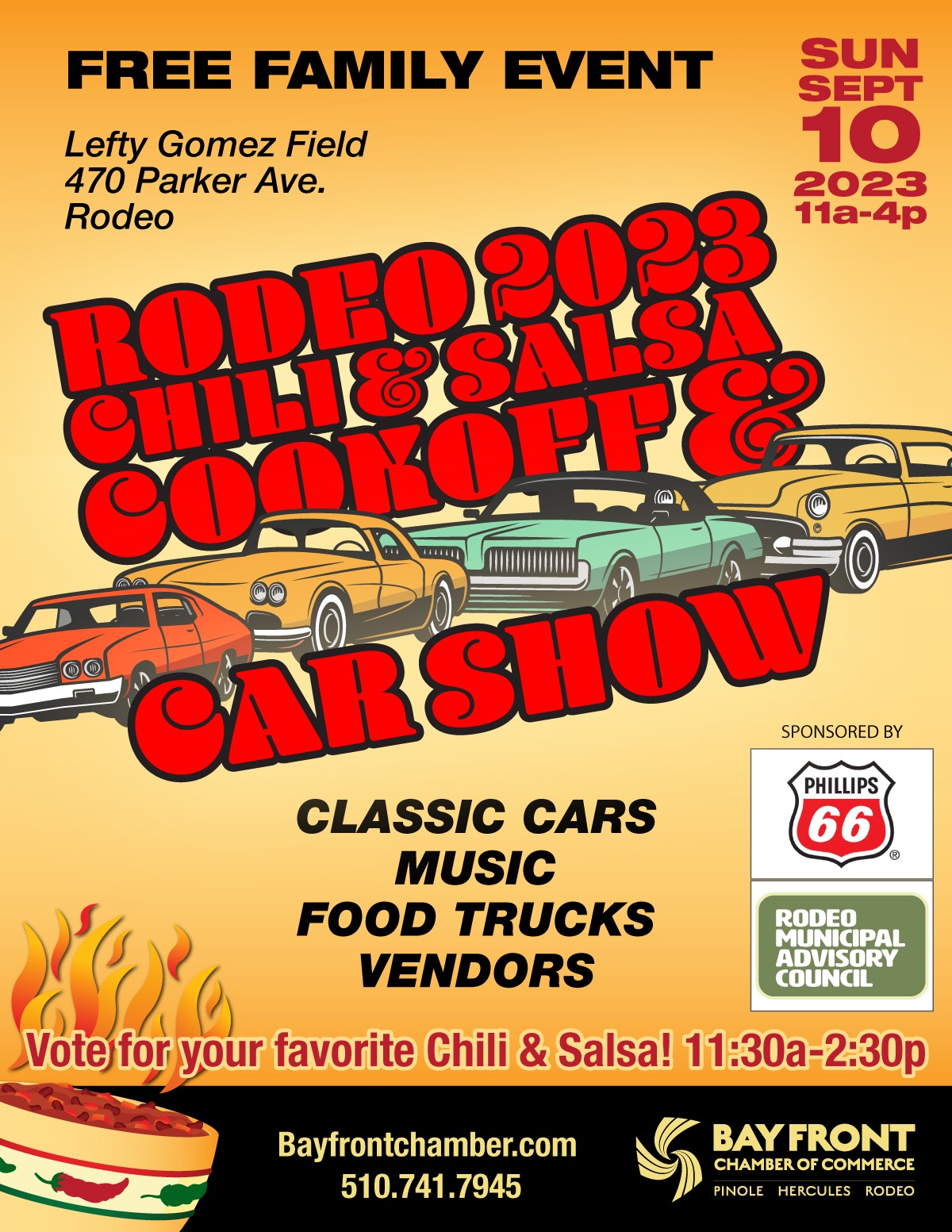 Have a classic car to show? Register your car by August 30th and receive an event t-shirt. Do you have a great Chili or Salsa recipe? Join the Chili