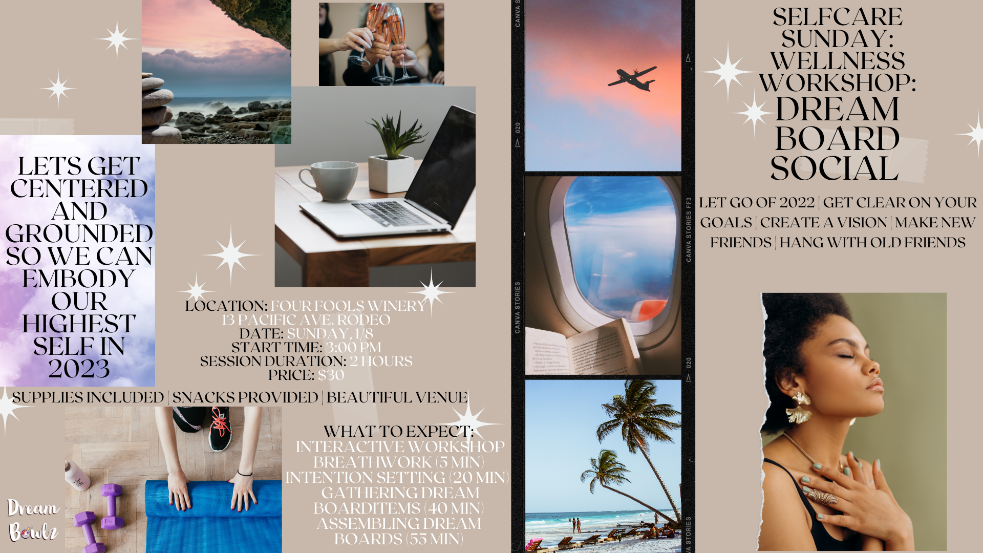 Start your year off right and intentional and Join us for our first Selfcare Sunday, Wellness Workshop of 2023: Dream Board Social.