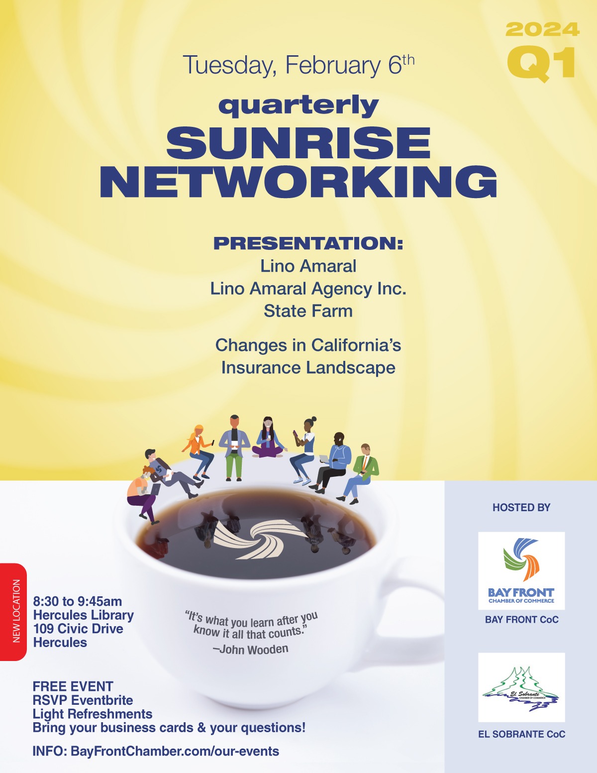 february, 2024 SUNRISE NETWORKING HERCULES PUBLIC LIBRARY 109 Civic Drive, Hercules 202406feb8:30 am10:00 amSUNRISE NETWORKINGFREE EVENT - OPEN TO ALL MEMBERS OF THE BUSINESS COMMUNITY8:30 am - 10:00 am HERCULES PUBLIC LIBRARY, 109 Civic Drive, Hercules Time (Tuesday) 8:30 am - 10:00 am LocationHERCULES PUBLIC LIBRARY109 Civic Drive, Hercules CalendarGoogleCal Leave A Comment Cancel replyComment Please enter an answer in digits:one × 2 =
