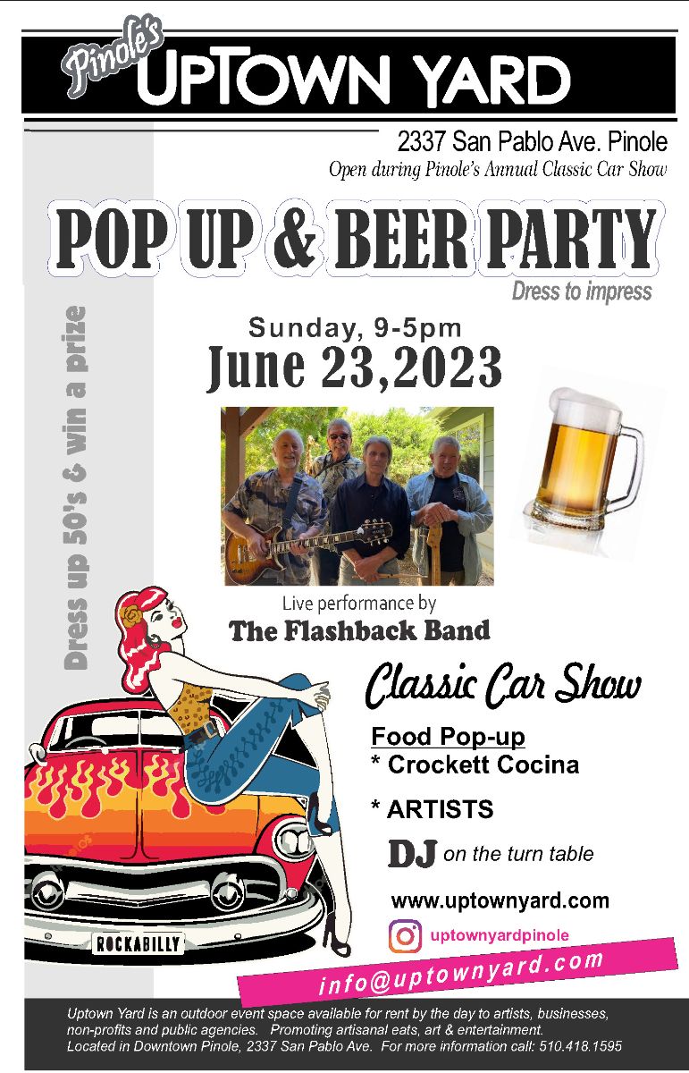 Enjoy the day checking out the Classic Car Show, enjoy food by Crockett Cocina, enjoy music by The Flashback Band. Dress up in 50’s attire and Win a Prize.
